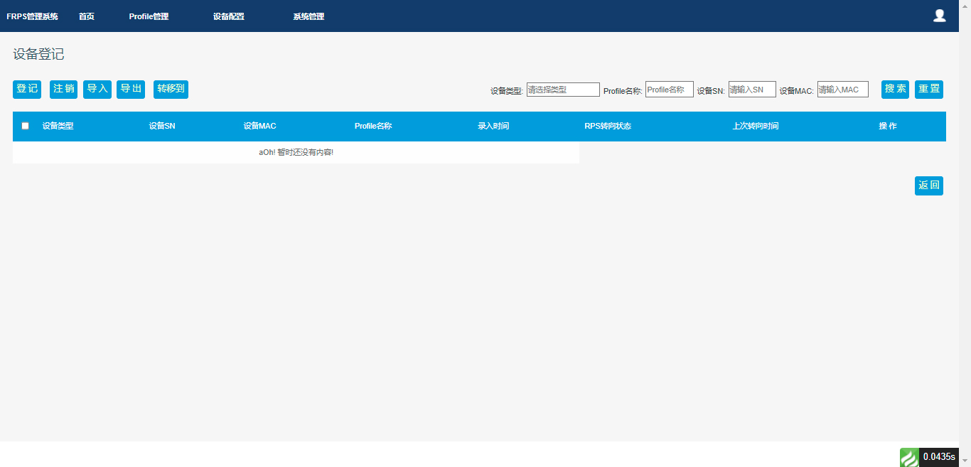 在成功添加Profile信息后,点击“设备配置”,我们就可以开始登记设备了。