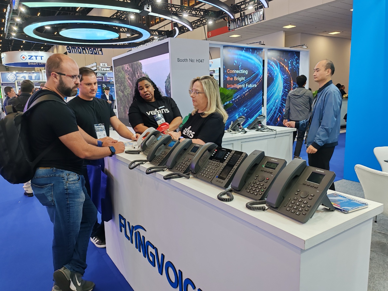 在这场汇聚了全球顶尖科技与创新思维的舞台上,飞音时代携旗下多款高性能、高稳定性的网络通讯终端产品与解决方案,在 H029 展位与来自世界各地的合作伙伴、行业专家及客户朋友们进行了一场深度交流,共同见证了网络连接如何为商业世界注入新的活力。