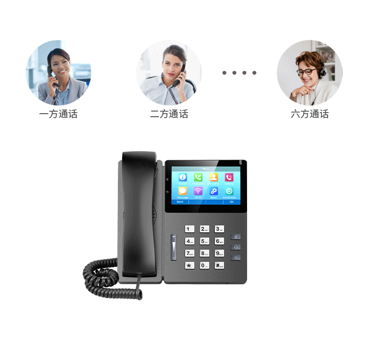 采用隔音罩及高级回声消除技术,支持多路Opus、G.722等语音编解码,即使在嘈杂的环境,也能得到清晰的VoIP通话质量,轻松驾驭本地六方高清语音会议。